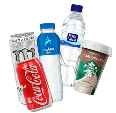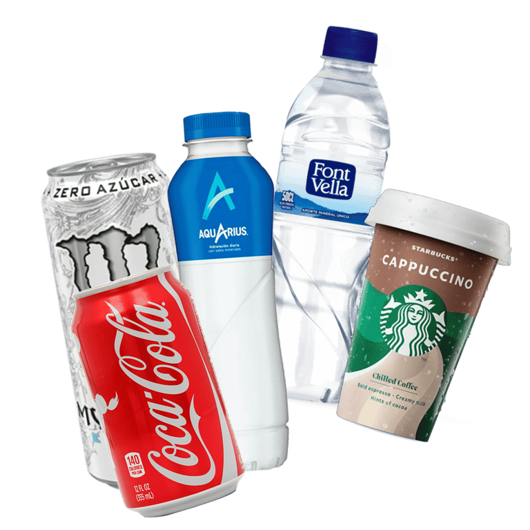 Refrescos, aguas, zumos, bebidas energéticas y café para llevar.